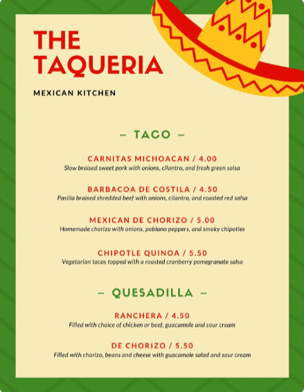 Here at Taqueria.Vegas, our philosophy is simple: Stay true to the roots and make every meal a celebration. Great food brings people together, and there's nothing quite like the joy of sharing a meal. Our recipes have been passed down through generations, and each taco is a story, each salsa a memory.Our Menu